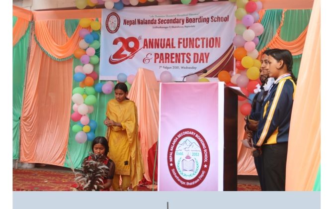 पुरा पढ्नुहोसभैरहवा, ८ फागुन । रुपन्देहीको सिद्धार्थनगर नगरपालिका–९ प्रभातपथस्थित नेपाल नालन्दा आवासीय माध्यमिक विद्यालयले आफ्नो २९ औं वार्षिकोत्सव तथा अभिभावक दिवस मनाएको छ । दिवसको अवसरमा बुधबार विद्यालय प्रांगणमा आयोजित समारोहमा बोल्दै प्रमुख अतिथि सिद्धार्थनगर नगरपालिकाकी...
