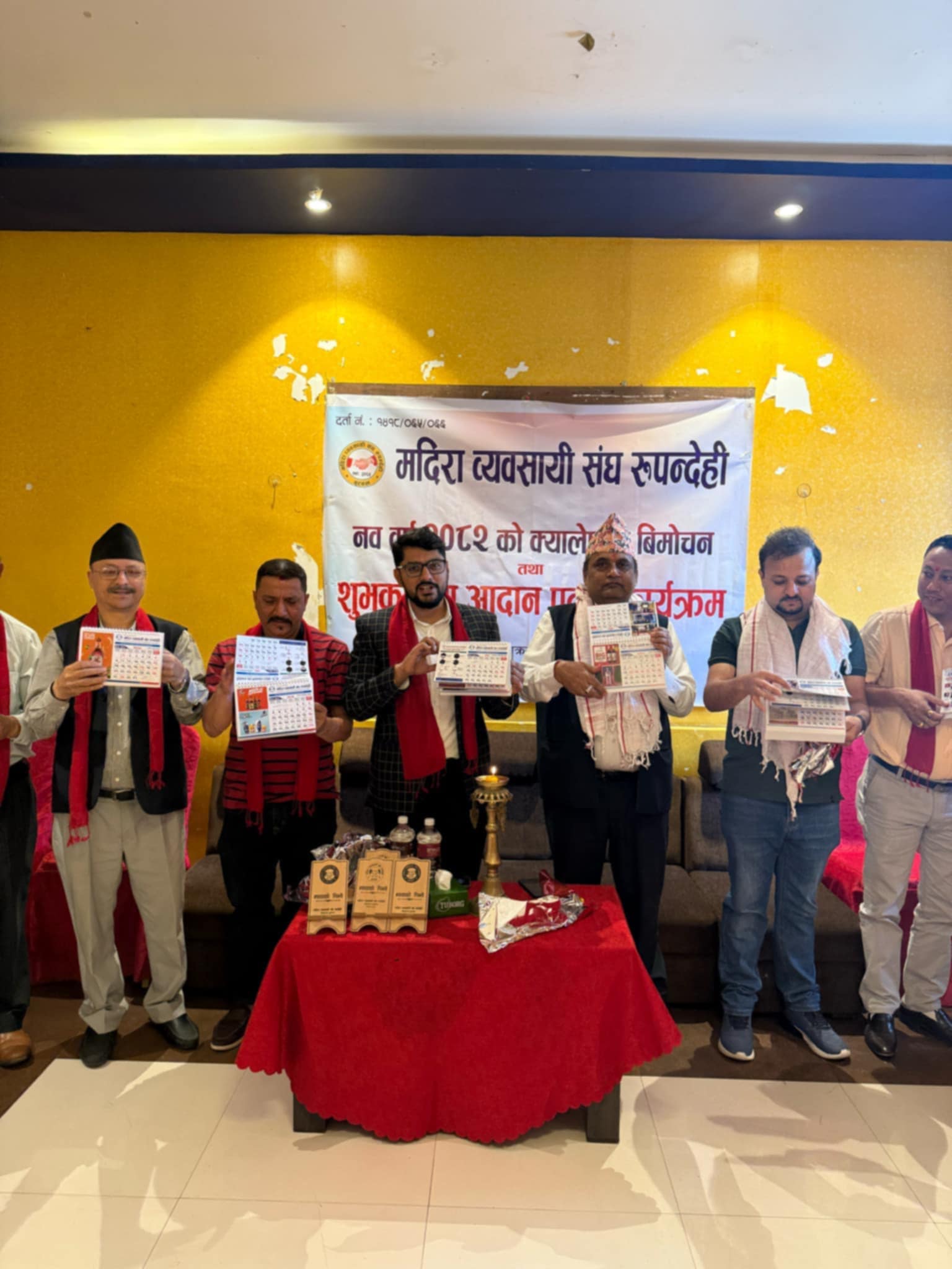 बुटवल । मदिरा ब्यबसायी संघ रुपन्देहीले नव वर्ष वि.स २०८२ सालको शुभ अबसरमा शुभकामना आदान प्रदान कार्यक्रम सम्पन्न गरेको छ। साथै एक कार्यक्रमका बीच शुक्रबार क्यालेन्डर बिमोचन पनी गरिएको छ।